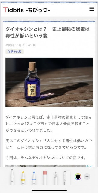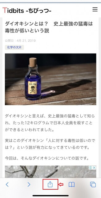 Safari(Edge)で普通に記事を閲覧します。そのとき変更したいところが見つかったら、下部の上向きアイコンをタップします。