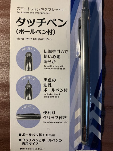 ただ、安物は感度が悪くて使えないかもしれないという不安があります。そこで、2021年1月時点で百円均一で売っているタッチペンを実際に購入して試してみました。